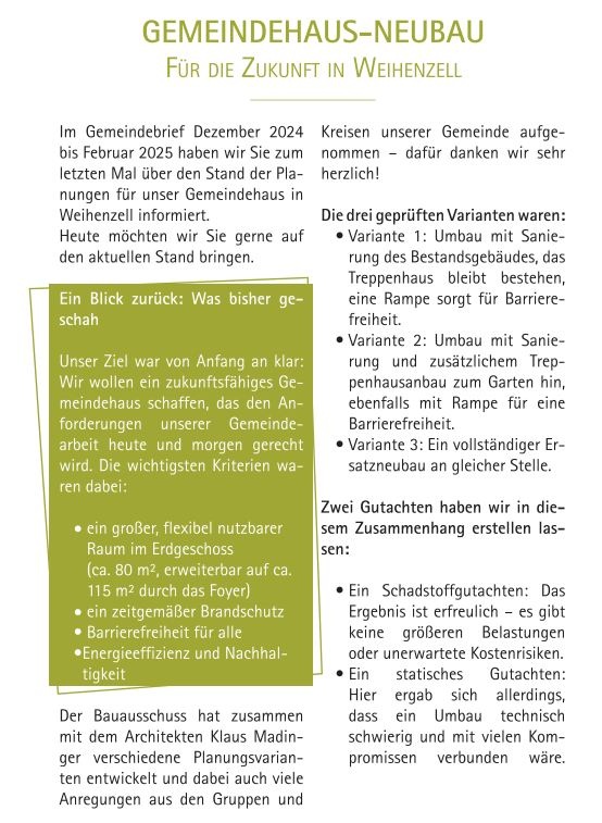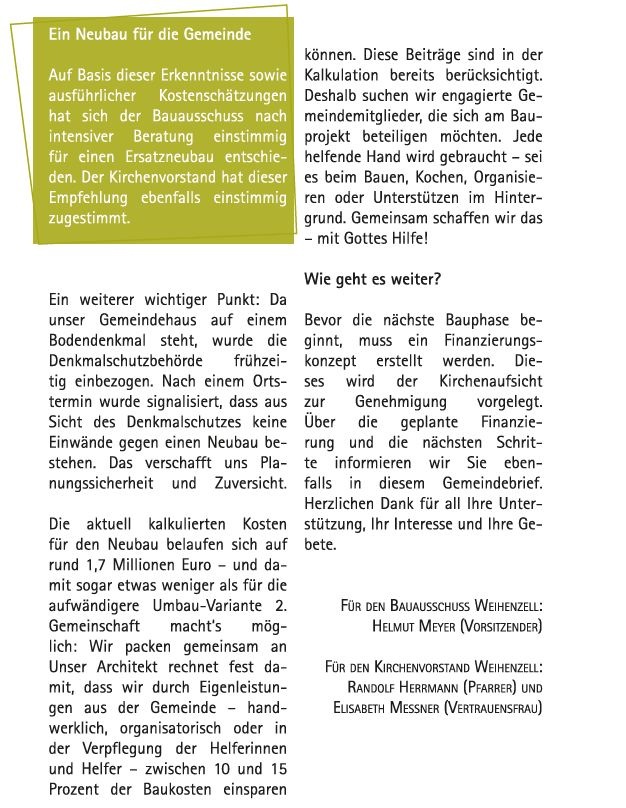 Verwendungszweck: Gemeindehaus